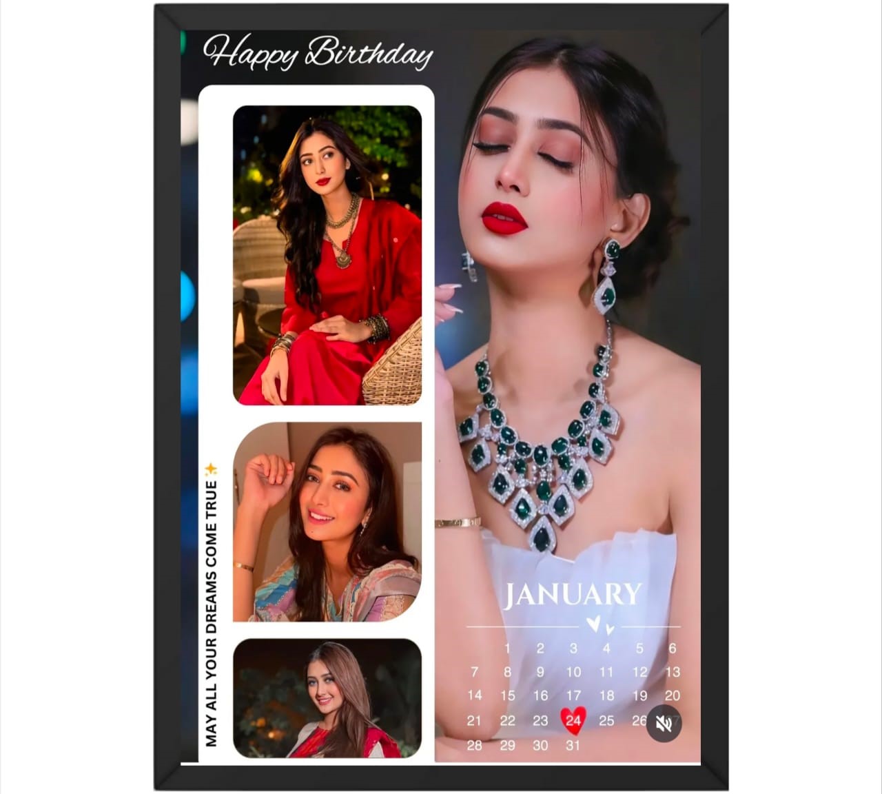 This image is a template or design for a personalized wedding calendar or photo album page for the month of November. The design features photos of a non-celebrity woman in traditional Indian bridal wear, specifically a red and gold lehenga, which is a classic choice in Indian culture symbolizing love, prosperity, and vitality.